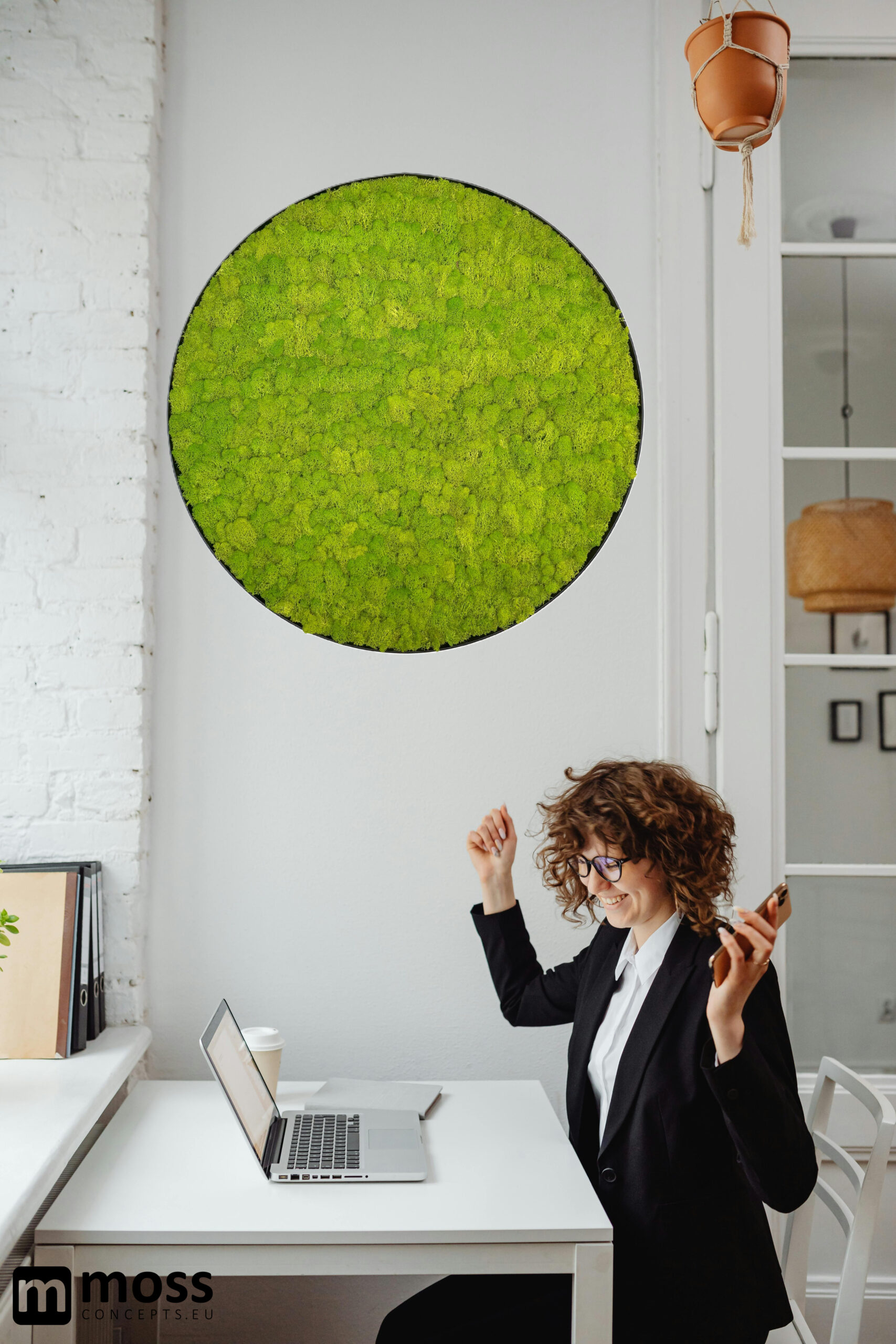 MOSS concepts Mosschilderij LINN Metal 120cm. is een uniek en stoer schilderij van rendiermos in de prachtige kleur springgroen. De fraaie zwarte metalen lijst met luxe mat zwarte poedercoating geeft het mosschilderij een stoere uitstraling.