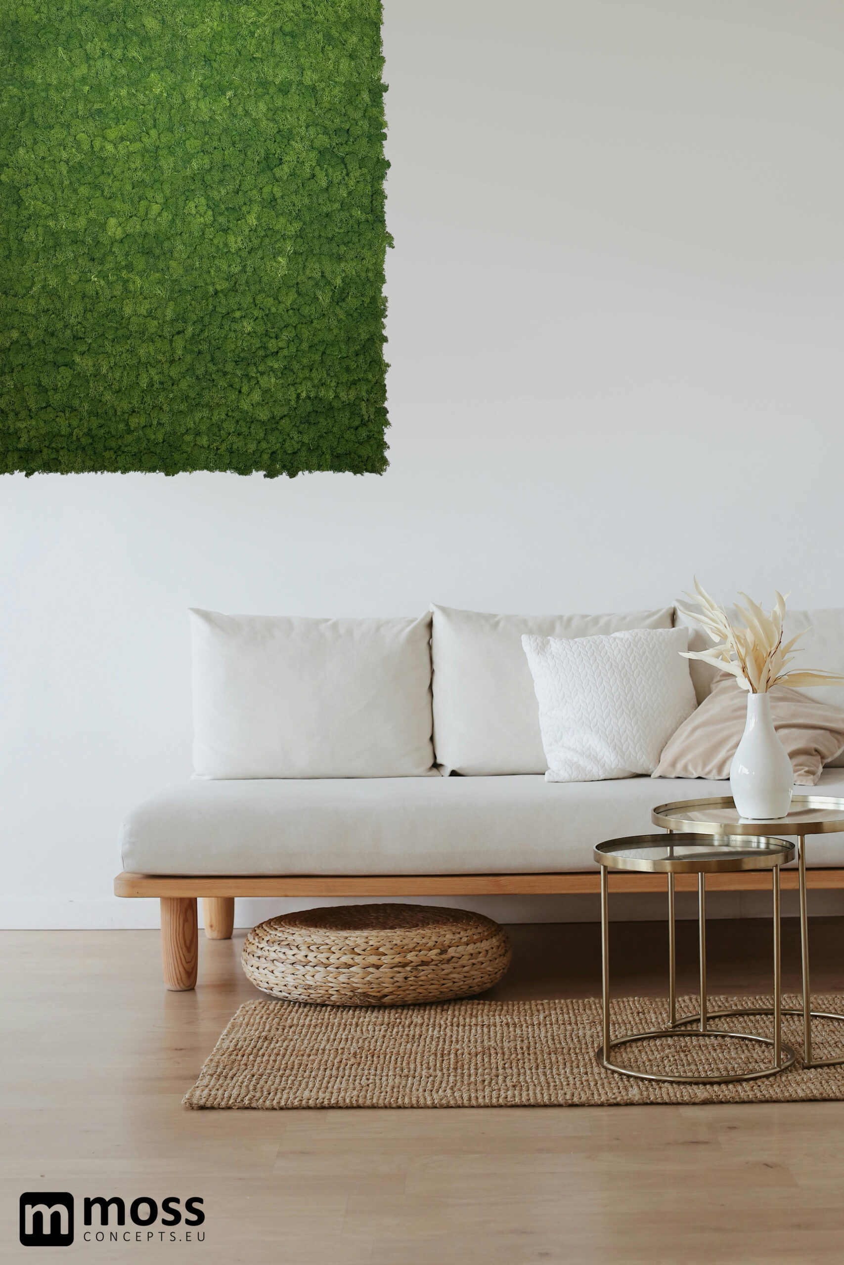 Akoestische werking. Met de moswand panelen breng je op eenvoudige wijze een stukje natuur in huis of op je kantoor. Een mosmuur heeft een positieve werking op de sfeer en het comfort in de ruimte. Ook werkt het mos geluidsabsorberend en vermindert hierdoor het omgevingsgeluid. Dit is zeer gunstig in drukke kantoren, woonkamers of openbare ruimtes.